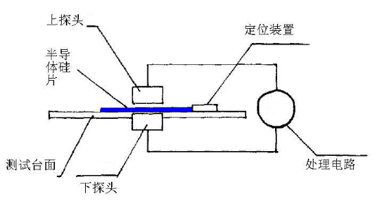 1、電阻率測(cè)試探頭原理 電阻率測(cè)試模塊是由一對(duì)共軸渦流傳感器,以及后續(xù)的處理電路組成。將半導(dǎo)體硅片置于兩個(gè)探頭的間隙中時(shí),在電磁場(chǎng)的作用下,半導(dǎo)體硅片中會(huì)產(chǎn)生渦流效應(yīng),通過(guò)檢測(cè)渦流效應(yīng)的大小,可以換算出該硅片的電阻率和方塊電阻。本方法是一種非接觸無(wú)損測(cè)量的方法,不損傷材料表面,可以在大多數(shù)場(chǎng)合有效替代四探針?lè)y(cè)試電阻率以及方塊電阻。