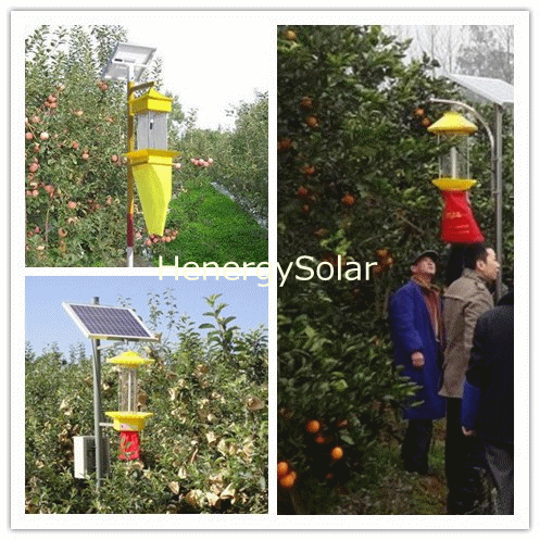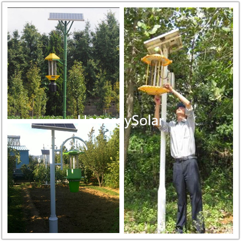 太陽(yáng)能光伏防蟲害系統(tǒng)是利用太陽(yáng)能電池板作為用電來(lái)源,其將白天太陽(yáng)能發(fā)的電貯存起來(lái),晚上放電給殺蟲燈具,供其工作。太陽(yáng)能光伏防蟲害系統(tǒng)是利用365±50nm波長(zhǎng)紫外光對(duì)昆蟲具有激備較強(qiáng)的趨光、趨波、趨色、趨性的特性原理,確定對(duì)昆蟲的誘導(dǎo)波長(zhǎng),研制專用光源,利用放電產(chǎn)生的低溫等離子體,紫外光輻射對(duì)害蟲間生的趨光興奮效應(yīng),引誘害蟲撲向燈的光源,光源外配置高壓擊殺網(wǎng),殺死害蟲,使害蟲落下專用的接蟲袋內(nèi),達(dá)到滅殺害蟲的目的。