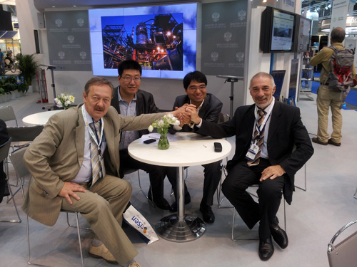 合能陽(yáng)光與俄略斯TELECOM公司達(dá)成戰(zhàn)略合作伙伴關(guān)系。上圖為合能陽(yáng)光總經(jīng)理肖宗杰,國(guó)際部經(jīng)理董培明與TELECOM總裁Mr.Vladimir,副總兼技術(shù)總監(jiān)Mr.Boris合照。
