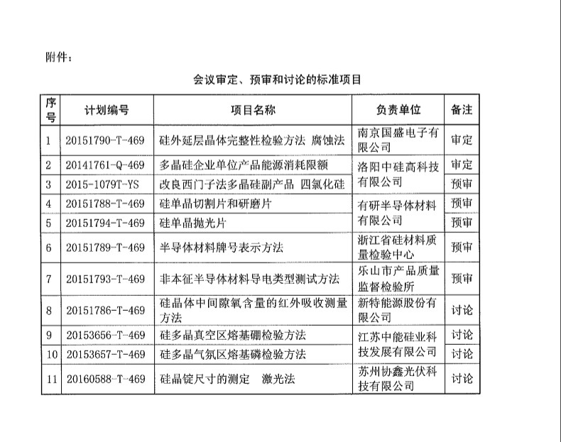 2016年9月7日半導(dǎo)體材料標(biāo)準(zhǔn)工作會議在新疆昌吉召開,會議將對《多晶硅企業(yè)單位產(chǎn)品能源消耗限額》等11項(xiàng)標(biāo)準(zhǔn)進(jìn)行討論、預(yù)審、審定和任務(wù)落實(shí)。