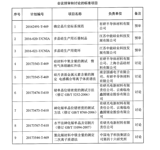 2018年4月24日會議正式召開,會議由全國半導(dǎo)體設(shè)備與材料標(biāo)準(zhǔn)化技術(shù)委員會材料分技術(shù)委員會主辦,由有研半導(dǎo)體材料有限公司協(xié)辦;江蘇中能硅業(yè)科技發(fā)展有限公司,云南臨滄鑫圓鍺業(yè)股份有限公司,北京合能陽光新能源技術(shù)有限公司等三十多家標(biāo)委會成員及國內(nèi)半導(dǎo)體企業(yè)參加了會議并參與行業(yè)標(biāo)準(zhǔn)的預(yù)審和討論。會議由全國半導(dǎo)體設(shè)備與材料標(biāo)準(zhǔn)化技術(shù)委員會秘書長賀東江主持,并對本次會議的工作內(nèi)容給出指導(dǎo)性意見。