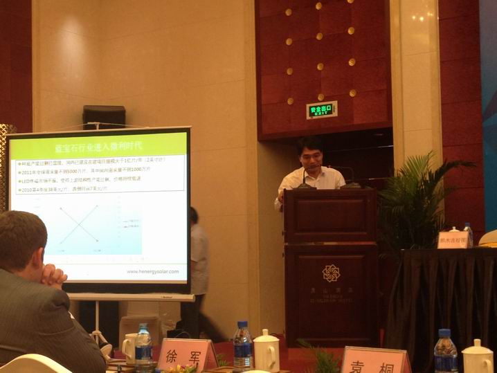 圖為北京合能陽(yáng)光新能源技術(shù)有限公司總經(jīng)理肖宗杰作了《微利時(shí)代下的藍(lán)寶石品質(zhì)控制》的專題演講 。