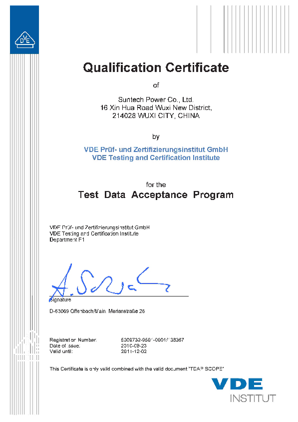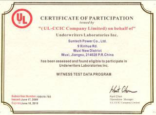 同時(shí)尚德光伏組件檢測(cè)實(shí)驗(yàn)室是中國(guó)第一個(gè)頂尖水準(zhǔn)檢測(cè)實(shí)驗(yàn)室,并獲得Underwriters Laboratories (UL) 機(jī)構(gòu)授予該實(shí)驗(yàn)室見(jiàn)證測(cè)試程序 (WTDP) 證書(shū)。