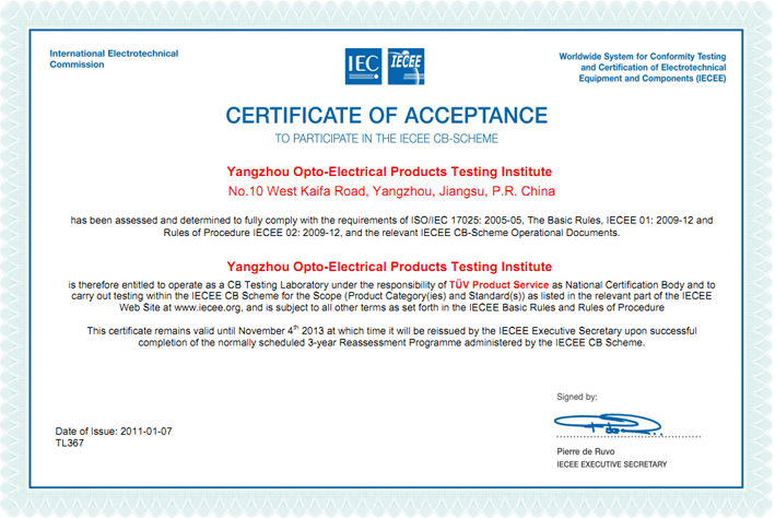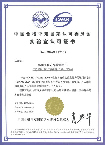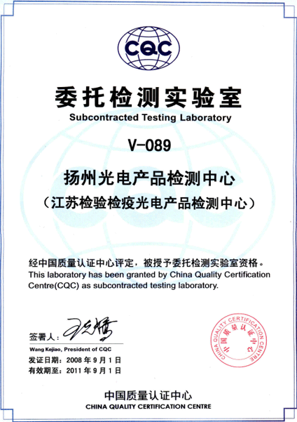 揚(yáng)州光電產(chǎn)品檢測中心成立于2007年,是專門從事光伏產(chǎn)品檢測的第三方檢測機(jī)構(gòu),是國家質(zhì)量監(jiān)督檢驗(yàn)檢疫總局批準(zhǔn)的全國唯一從事進(jìn)出口光電產(chǎn)品檢測的“國家級光電產(chǎn)品檢測重點(diǎn)實(shí)驗(yàn)室”。2011年1月,通過了IECEE的審核,成為光伏產(chǎn)品檢測CB實(shí)驗(yàn)室,即CBTL,編號:TL367。