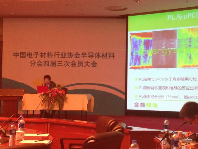 The picture shows HenergySolar Technology Co., Ltd., CEO Zongjie Xiao made ??a keynote speech of semiconductor material quality and competitiveness improvement in the low-profit era ".