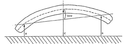 彎曲度(Bow)即晶片中心點(diǎn)到參考面的距離,如下圖: